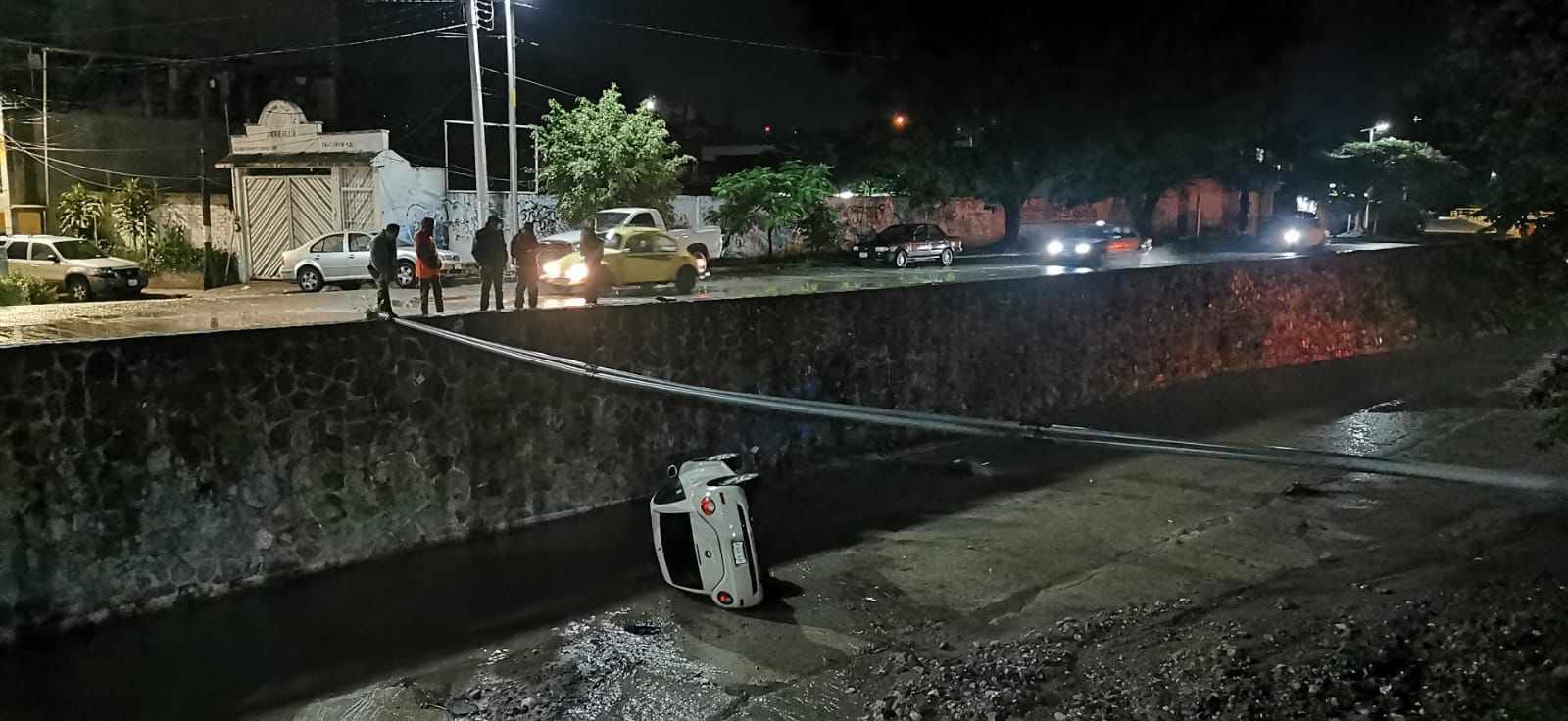 Está madrugada un vehículo cayó al encauzamiento del Huacapa a la altura de las piñatas, en Chilpancingo.