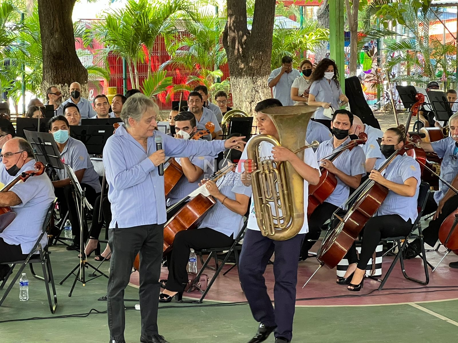 En la presentación didáctica de la Filarmónica de Acapulco, bajo la dirección del maestro Eduardo Álvarez, quien explicó a los alumnos el funcionamiento de una Orquesta Sinfónica, las secciones que la conforman y los instrumentos que se tocan con la participación de los estudiantes de la Orquesta Infantil de Renacimiento.