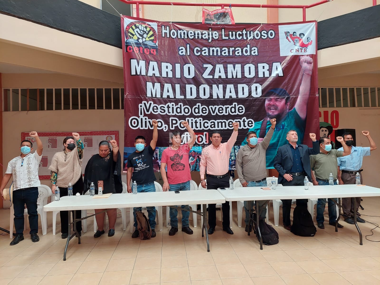 Integrantes de la Coordinadora Estatal de Coordinadores de la Educación en Guerrero (CETEG), rindieron homenaje póstumo a su compañero Mario Zamora Maldonado, asesinado en enero del año pasado por un grupo criminal.