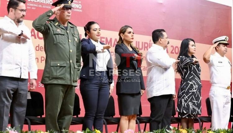 La gobernadora Evelyn Salgado, inauguró la Semana Jurídica 2023 en el Auditorio José Joaquín de Herrera, acompañada por el Presidente del Tribunal Superior de Justicia, Raymundo Casarrubias Vázquez; la Presidenta de la Mesa Directiva del Congreso del Estado, Yanelli Hernández Martínez; la Alcaldesa de Chilpancingo, Norma Otilia Hernández Martínez; la Presidenta del Sistema DIF Guerrero, Liz Salgado Pineda, así como mandos militares navales y civiles, en el preámbulo del 106 Aniversario de la Promulgación de la Constitución Política de los Estados Unidos Mexicanos.