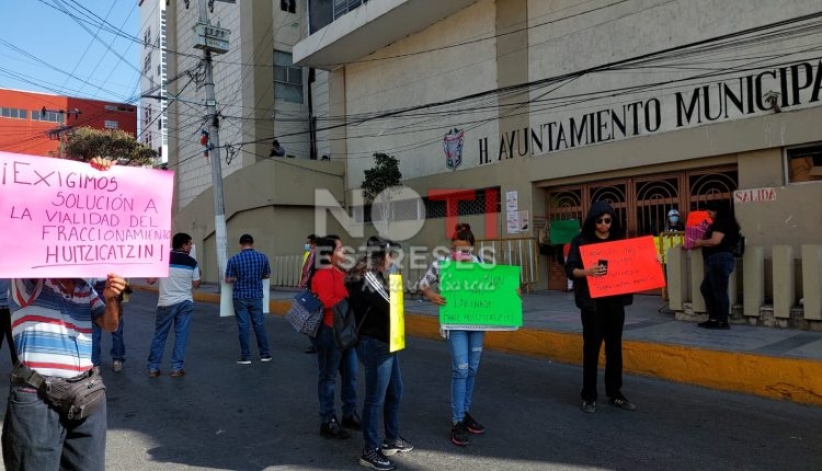 Los incormes portaron pancartas donde se leía: “Exigimos solución a la vialidad de fraccionamiento Huitzicantzin”, “Pagamos nuestros impuestos” y “Exigimos solución”.