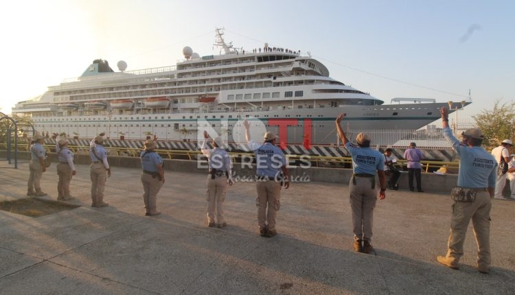 Procedente de Puerto Vallarta, los 767 pasajeros y 413 tripulantes, recibieron una cálida bienvenida por parte de autoridades municipales y en medio del folclore que distingue a esta ciudad.