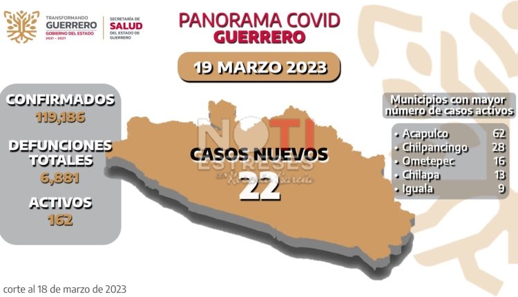 La Secretaría de Salud Guerrero (SSG) reportó que hay 162 casos activos de Covid-19, de los cuales 22 se confirmaron en las últimas 24 horas.