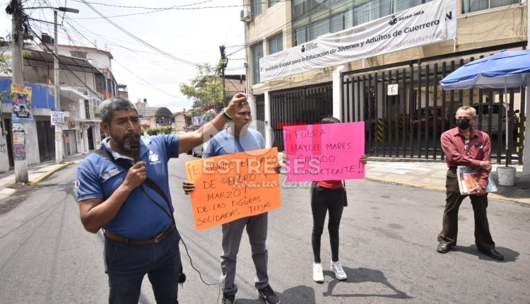 Trabajadores del Instituto Estatal para la Educación de Jóvenes y Adultos de Guerrero (IEEJAG) bloqueron la avenida Ignacio Ramírez, en demanda del pago de sus salarios.