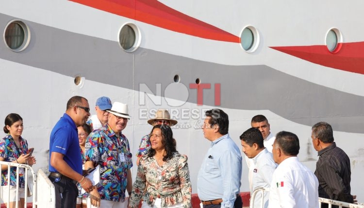 En la Terminal Marítima y en medio del folclore guerrerense, la alcaldesa, Abelina López, saludó y dio la bienvenida a los visitantes extranjeros que descendieron del crucero para recorrer la ciudad y conocer los diversos atractivos que ofrece este destino de playa.