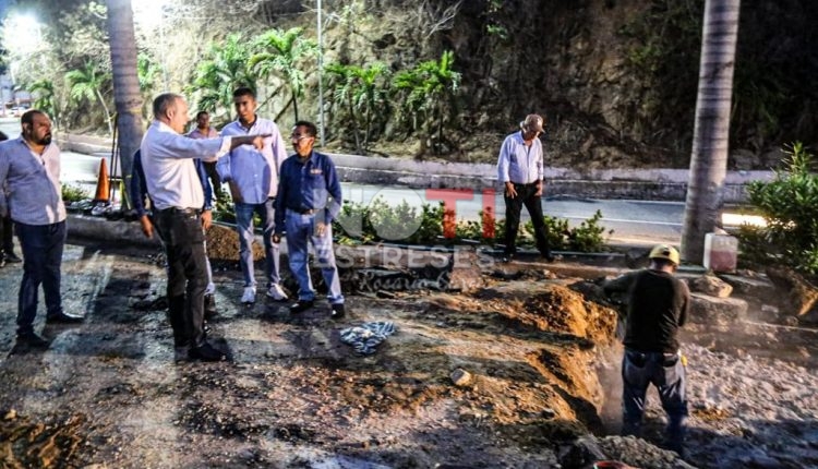 El Gobierno del Estado, a través de la Comisión de Agua Potable, Alcantarillado y Saneamiento del Estado de Guerrero (CAPASEG), reparó nuevamente este miércoles una fuga emergente en la línea de conducción de agua que atraviesa la avenida Escénica de Acapulco, en apoyo al municipio y población del puerto turístico.