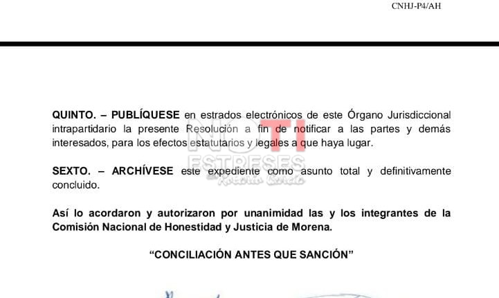 -La resolución de la Comisión Nacional de Honor y Justicia de Morena