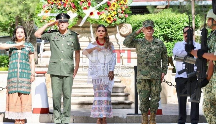 “Si Vicente Guerrero no claudicó y no se rindió aun en tiempos tan complicados, nosotros tampoco tenemos ese privilegio y no nos vamos a rendir, vamos hacia adelante juntos porque ese es el legado de un gran hombre, don Vicente Guerrero”, expresó la gobernadora Evelyn Salgado.