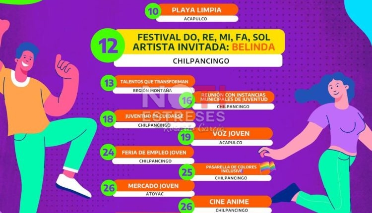 SEJUVE celebra Mes de la Juventud, con eventos deportivos, artísticos y culturales en distintos municipios de Guerrero Con el propósito de fomentar la convivencia y motivar a las y los jóvenes para que muestren sus talentos, disfruten de conciertos, conozcan ofertas laborales y se involucren en la vida pública de Guerrero, la #SEJUVE presentó la programación de eventos que han sido organizados para celebrar el Mes de la Juventud.La titular de SEJUVE, Jessica Maldonado indicó que es instrucción de la gobernadora de Guerrero, Evelyn Salgado Pineda, se desarrollen eventos enfocados a la juventud y niñez guerrerense en las distintas regiones del estado como parte de la estrategia de pacificación del estado.Las actividades conmemorativas al Mes de la Juventud iniciaron el pasado 10 de agosto con la limpieza de Playa Tlacopanocha en Acapulco, donde además de fomentar el cuidado al medio ambiente, las y los jóvenes participantes se hicieron acreedores a cuponeras de descuentos en distintos comercios del puerto.Para este 12 de agosto, en la capital del estado arranca el Festival #DoReMiFaSol, con la presentación de la actriz y cantante Belinda, que a partir de las 5:00 de la tarde, pondrá a corear su repertorio musical a los chilpancingueños en las instalaciones del Polideportivo.En Tlapa de Conmonfort, el 13 de agosto, se llevará a cabo el evento Talentos que Transforman: Región Montaña, la cita es en el Portal Morelos, en punto de las 11:00 de la mañana.En tanto para el 16 de agosto se tiene programada la Reunión con Instancias Municipales de Juventud y para el 18 Juventud Es Cuidarse, a fin de concientizar en temas de prevención y salud sexual, ambas actividades en la capital del estado.El 19 de agosto la sede regresa al puerto de Acapulco para disfrutar de la voz inigualable del talento guerrerense con el evento Voz Joven.Los días 24 y 25 de agosto se tiene prevista la realización de la Feria Empleo Joven y la Pasarela de Colores Inclusive, en la ciudad de Chilpancingo.Ya para el 26 de agosto en el municipio de Atoyac de Álvarez, perteneciente a la Región Costa Grande, chicas y chicos que cuenten con un emprendimiento podrán formar parte del Mercado Joven.También el 26 de agosto, pero en Chilpancingo quienes son fanáticos del Cine Anime disfrutarán de una proyección.Mientras que el 27 de agosto se ha organizado la Rodada por la Juventud: Chilpancingo-Acapulco que dará inicio a las 6:00 de la mañana, los interesados podrán registrarse en las categorías de convivencia y competición en las siguientes páginas: https://.gle/BpT1PwqsnifEybF57 y https://forms.gle/hjELZaYRefyrv1rS9.Para el 29 de agosto se tiene previsto el Rally Inclusivo y el día 30 el Mercado Joven en la ciudad de ChilpancingoPara cerrar las actividades el 31 de agosto se espera el Encuentro Cultural Afro, teniendo como sede el municipio de Marquelia.La secretaria de la Juventud, extendió la invitación al público interesado en participar y consultar las convocatorias vigentes en las redes sociales de la dependencia y disfrutar de un mes lleno de experiencias enriquecedoras para la juventud.