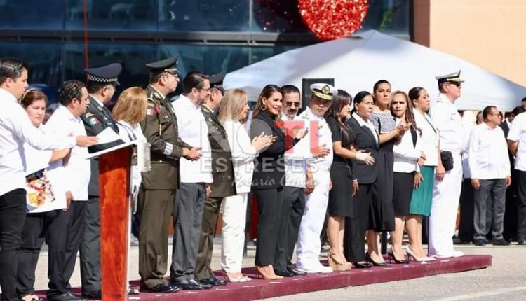 Durante este evento cívico mensual en la casa del pueblo, con servidores públicos de todas las dependencias del estado, la mandataria estatal izó la bandera monumental acompañada por los titulares de los poderes Legislativo y Judicial, con los honores correspondiente al lábaro patrio.