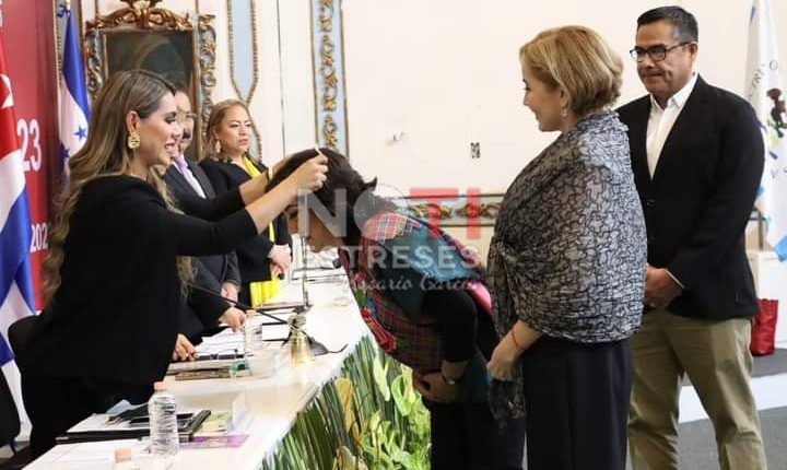 La estatuilla de plata, que representa la más alta condecoración a mexicanas y mexicanos que han destacado por enaltecer los más altos valores de la humanidad, fue recibida por Blanca Evelia Galeana Balanzar y María de Jesús Real García Figueroa, sobrina de la galardonada y Directora de la Casa Museo “Benita Galeana” respectivamente.
