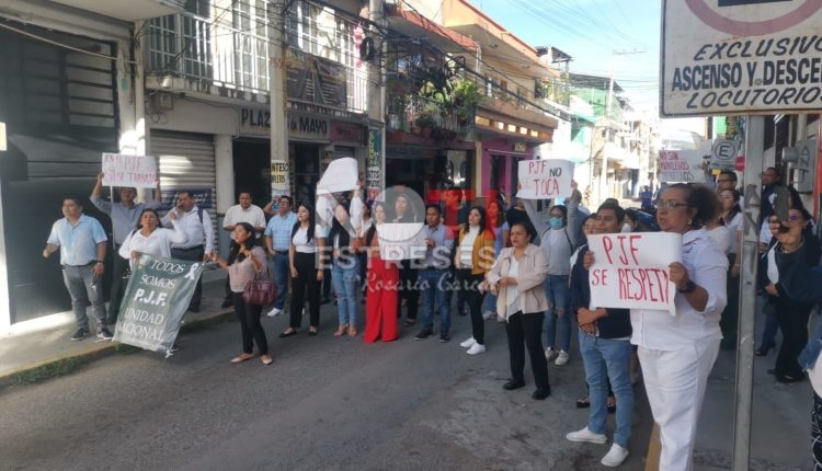 Trabajadores del Poder Judicial Federal (PJF) de Guerrero protestaron en sus oficinas en la calle 5 de mayo en el centro de Chilpancingo, en rechazo a la reforma que pretende eliminar 13 de los 14 fideicomisos del Poder Judicial, y aseguraron que esas acciones afectan los derechos de los trabajadores de esa instancia.