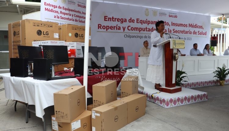 Invierte el gobierno de Guerrero cerca de 300 millones de pesos en equipamiento, insumos y unidades de cómputo para la Secretaría de Salud Estatal*Se atienden centros de salud, unidades médicas y hospitales generales de toda la entidad*Se redoblan esfuerzos para brindar una salud digna y de calidad: Ludwig ReynosoChilpancingo, Gro., 18 de octubre de 2023.- Con una inversión cercana a los 300 millones de pesos en materia de salud, el secretario general de Gobierno, Ludwig Reynoso Núñez, en representación de la gobernadora, Evelyn Salgado Pineda; hizo entrega a la Secretaría de Salud estatal de equipamiento, insumos y equipos de cómputo, para brindar una mejor atención en centros de salud, unidades médicas y hospitales generales del estado.Lo anterior con el fin de redoblar esfuerzos para brindar una salud digna y de calidad a la población guerrerense en todas las regiones, señaló el titular de la Secretaría general de Gobierno, quien destacó que 32 millones 251 mil pesos serán destinados al equipamiento e insumos a 24 Unidades Médicas del Fondo de Infraestructura Social para las entidades.