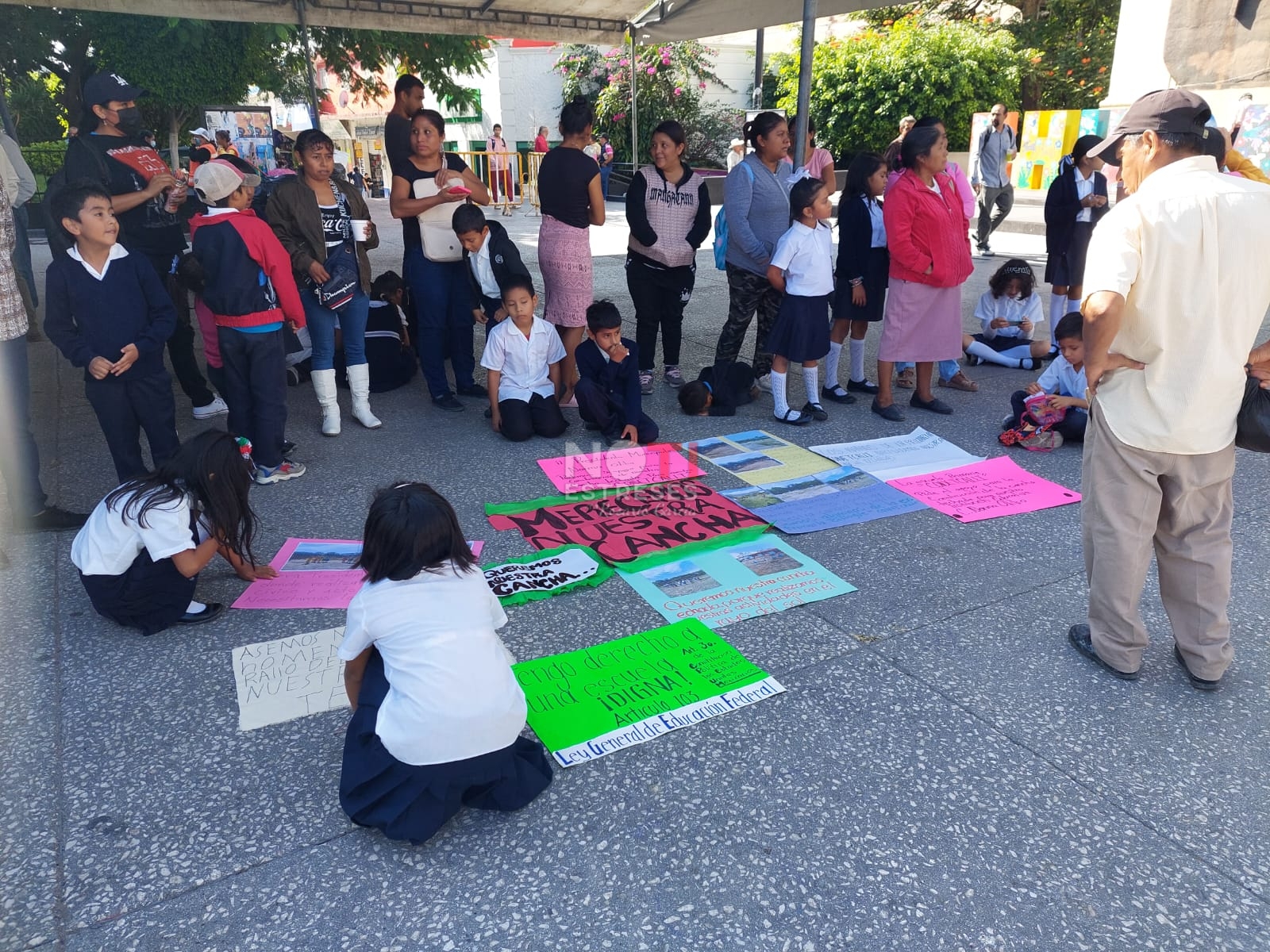 Padres de familia de la escuela primaria bilingüe “Conetcalli”, ubicada en el Fraccionamiento Sarh, calle Presea, a un costado de la Sede del Poder Ejecutivo, protestaron frente al ayuntamiento de Chilpancingo para exigir la construcción de una cancha techada.