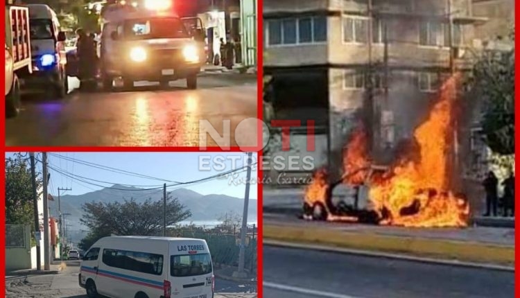 Otro hecho violento se reportó poco antes de las 8 de la mañana, cuando el Servicio 911 recibió una llamada de emergencia solicitando la ayuda de bomberos, porque un taxi, el marcado con el número 387 se estaba incendiado en el boulevard Petaquillas, al sur de Chilpancingo.