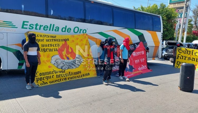 Normalistas bloquean la Autopista del Sol y retienen tres autobuses y dos autos