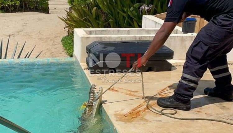 Un cocodrilo fue capturado cuando estaba nadando en una alberca de un inmueble particular en playa Blanca, Zihuatanejo