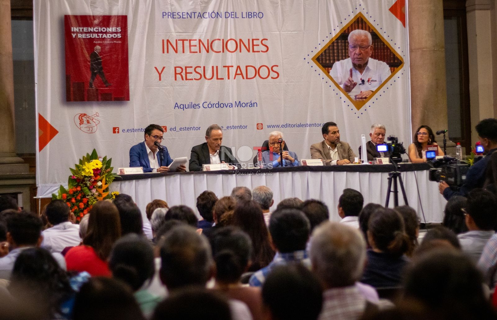 Ciudad de México.- Ante cientos de asistentes en el “Club de Periodistas de México” en la capital del país, Aquiles Córdova Morán, líder del Movimiento Antorchista dio a conocer a través de Editorial Esténtor su nueva obra titulada “Intenciones y resultados”, misma que contiene una contundente crítica al gobierno de Andrés Manuel López Obrador a través de discursos, conferencias y pláticas que abarcan del año 2019 a 2022. Sin embargo, dijo, no se trata de algo personal en contra del presidente ni se tiene la intención de favorecer a los contrincantes políticos de éste; “tiene intenciones electorales, pero no de votar por un partido u otro, sino para advertir al pueblo de México que elija a quien elija no va a resolver sus problemas. Hay que aprovechar la sensibilización y el interés del pueblo para decirles que el verdadero problema es el sistema económico capitalista”.