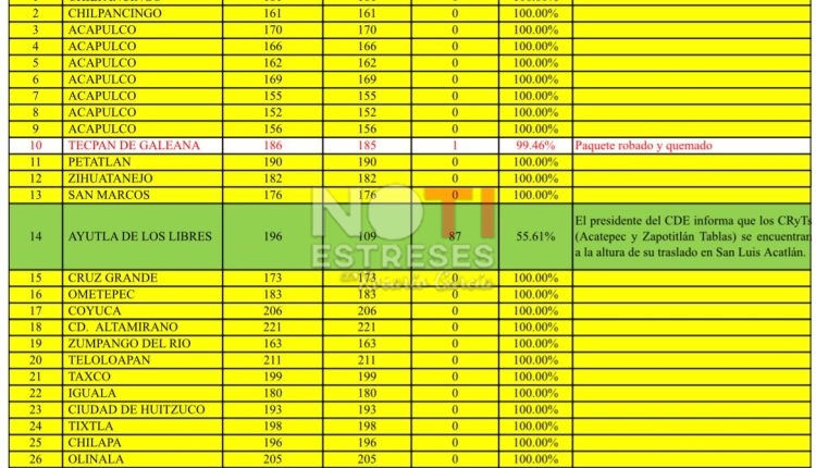 Durante la sesión permanente del IEPC, la consejera Dulce Merari Tlatempa informó que cuando el paquete era traslado al consejo distrital 10 con sede en Tecpan de Galeana, fue sustraído por personas desconocidas.