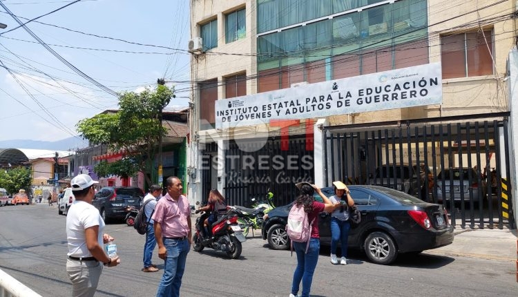 Trabajadores del Instituto Estatal para la Educación de Jóvenes y Adultos de Guerrero (IEEJAG), bloquearon la avenida Ignacio Ramírez para exigir el pago de salarios correspondiente al mes de mayo.