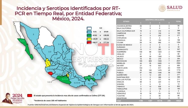 Guerrero se mantiene en primer lugar nacional de dengue, con el registro de 4 mil 645, y 21 personas han perdido la vida por ese padecimiento.