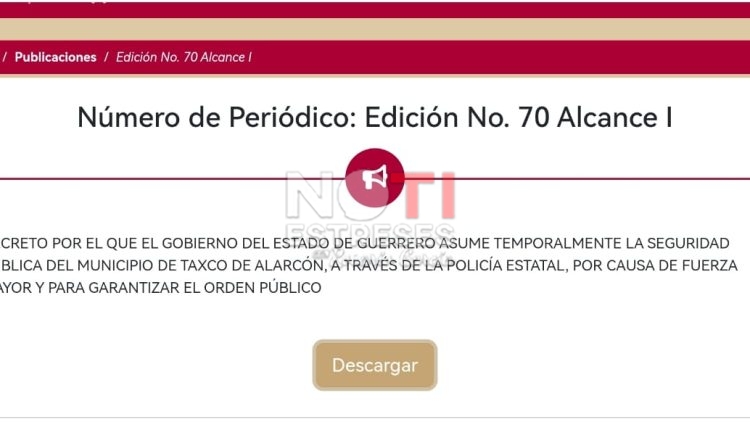 El documento fue difundido a partir del primer minuto de este viernes en las redes sociales oficiales del gobierno del estado y en el Periódico Oficial del Estado de Guerrero, en que se menciona que la finalidad es garantizar el orden público y protección de la población, del municipio ubicado en la zona Norte.