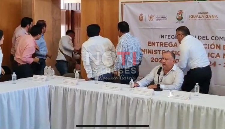 Personal de seguridad de los alcandes saliente y entrante de Iguala, David Gama Pérez y Erick Catalán Rendón, respectivamente, se pelearon a golpes, cuando sus jefes se encontraban en la reunión y conferencia de prensa por la instalación de la Comisión de Entrega-recepción de la administración pública municipal.