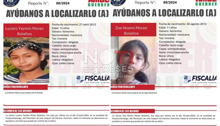 Las menores fueron vistas por última vez el pasado 12 de julio en la localidad de Hueycantenango, municipio de José Joaquín de Herrera, de quienes se teme que puedan ser víctimas de algún delito.
