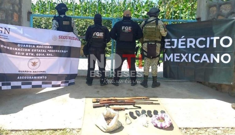 De acuerdo con el comunicado oficial, tras la agresión suscitada en la localidad de Ahuehuetla, municipio de Teloloapan, en la regi[on Norte de Guerrero, también fueron asegurados, armas de fuego, droga y más de 830 cartuchos útiles.