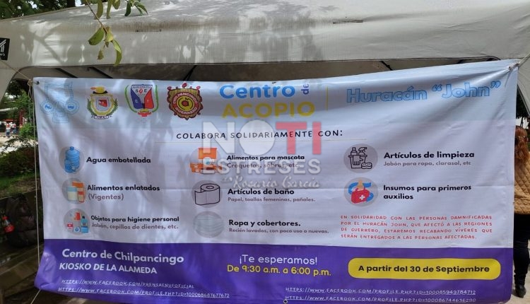 Los Comités estudiantiles de normales públicas de Guerrero, desde el pasado 30 de septiembre instalaron un centro de acopio en la alameda Francisco Granados Maldonado en Chilpancingo, para apoyar a por lo menos 435 compañeros que resultaron afectados por el huracán John.