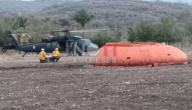 Explicó que el helibalde no se abastece de la Laguna de Tuxpan, porque está muy retirado del incendio y resulta más práctico el tanque colapsable.
