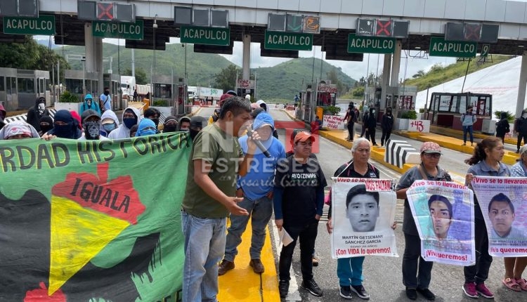 Protestan padres y madres de los 43 y normalistas de Ayotzinapa en la caseta de Palo Blanco de la Autopista del Sol—A casi 11 años de los hechos violentos de Iguala insisten en la presentación con vida de los estudiantes