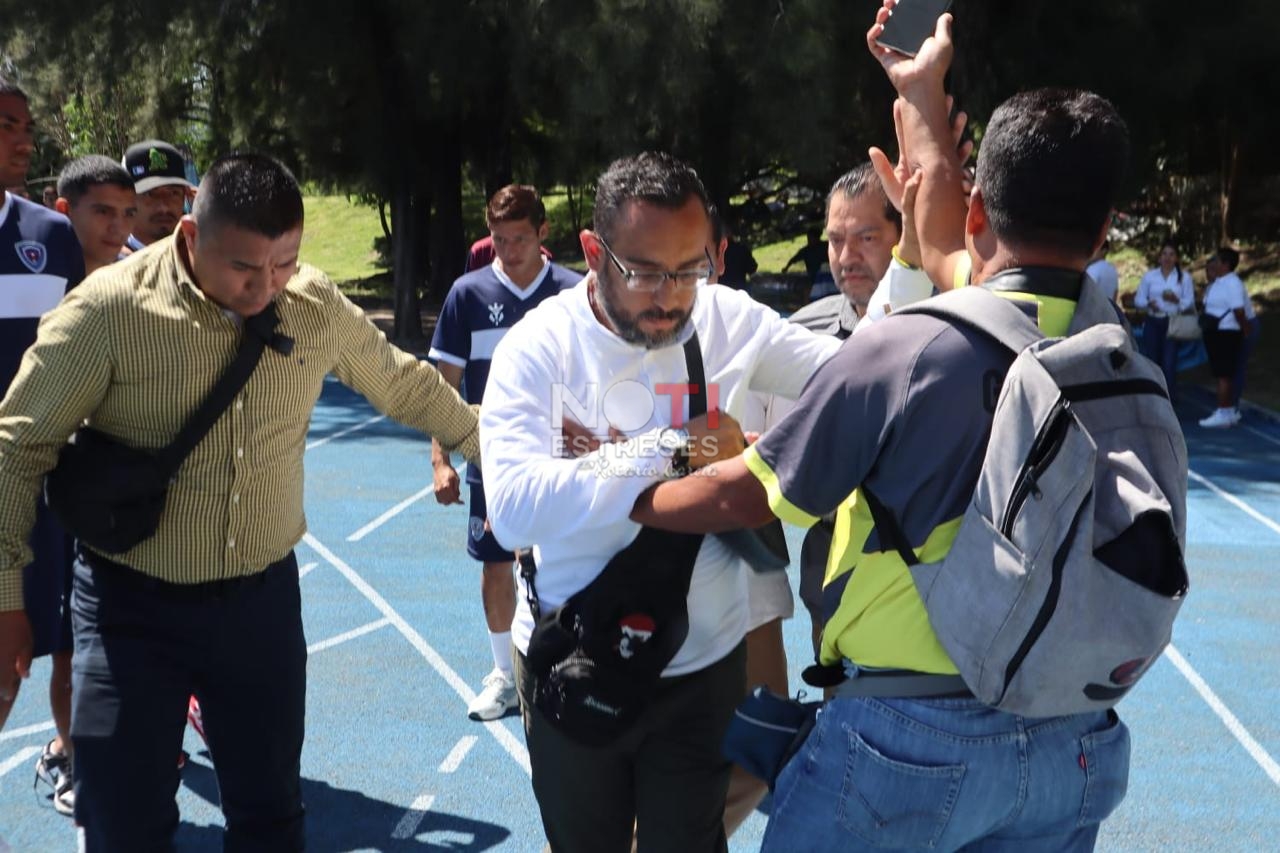 “Solo extendí mi grabadora y alcancé a preguntarle sobre la situación del equipo tras las suspensiones de varios jugadores. Me respondió que estaban a la espera de la resolución de la Federación, pero en ese momento un guardia me empujó con fuerza y trató de apartarme”, narró.