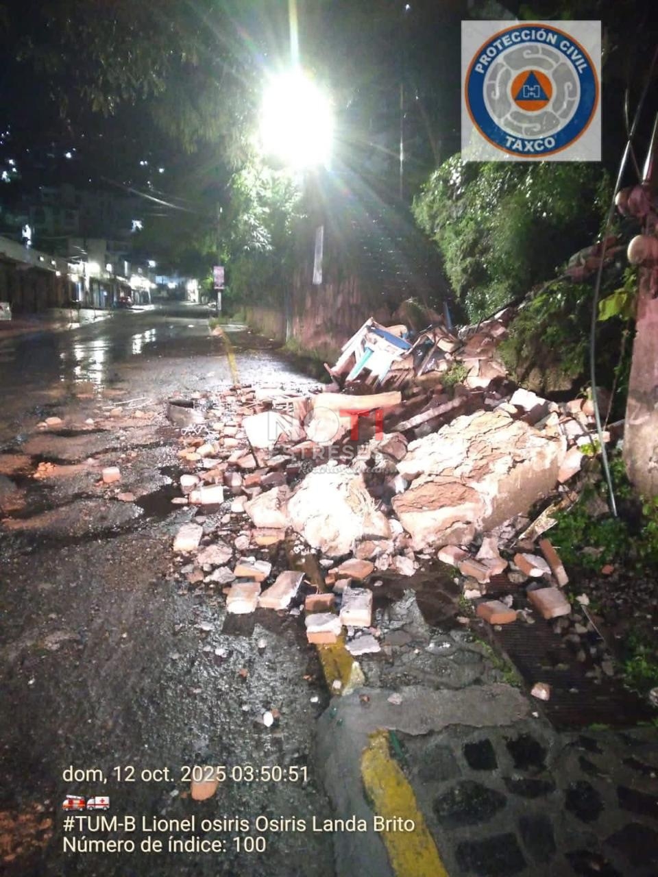 Las fuertes lluvias registradas la noche del sábado en Taxco de Alarcón, región Norte de Guerrero, provocaron deslaves y derrumbes en distintos puntos del municipio.