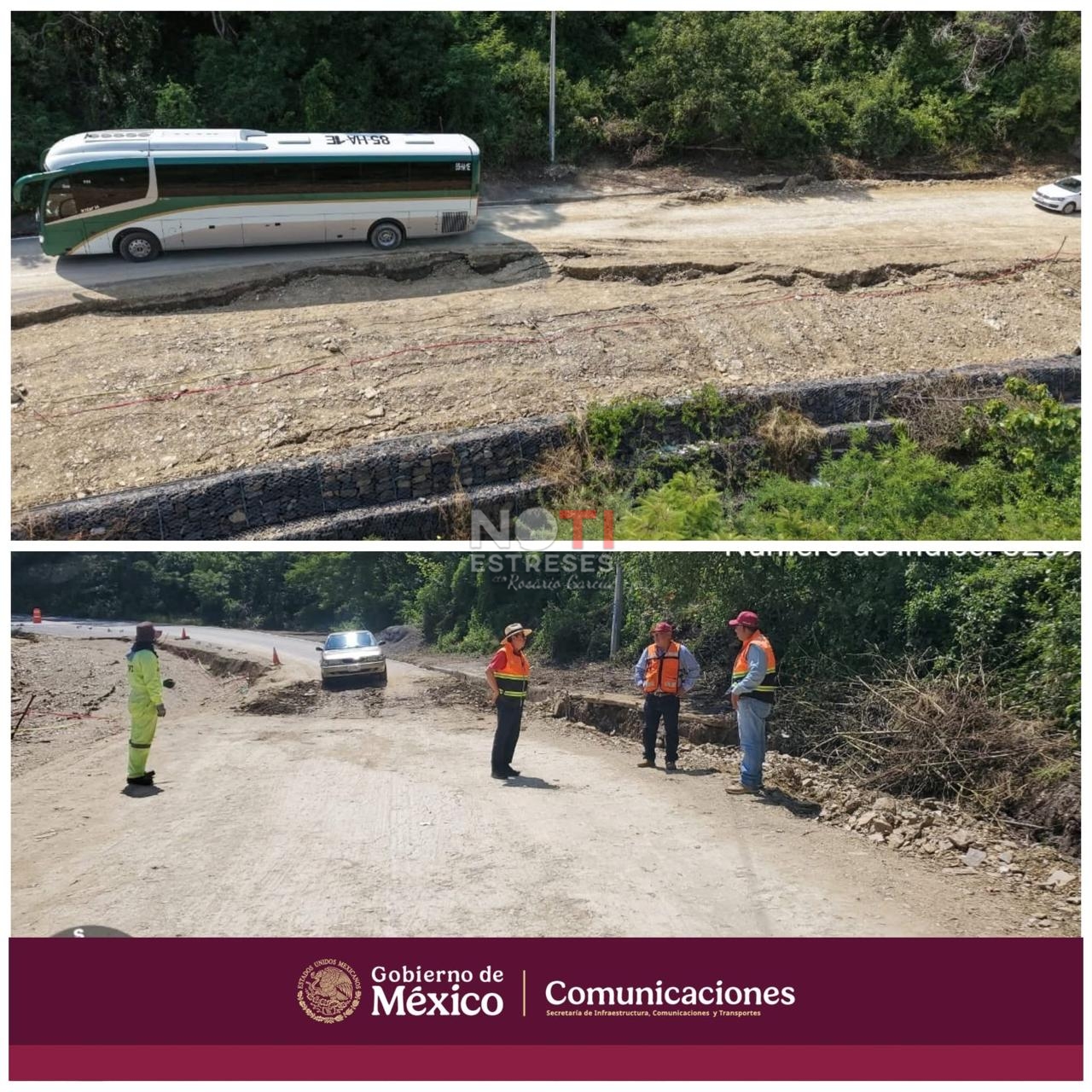 👉 Para prevenir accidentes, se colocó señalamiento preventivo y se mantiene alerta permanente, ya que por la gravedad del daño podría determinarse el cierre total del tramo.