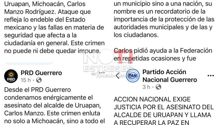 📰 Partidos en Guerrero condenan asesinato del alcalde de Uruapan; Morena, PT y PVEM guardan silencio