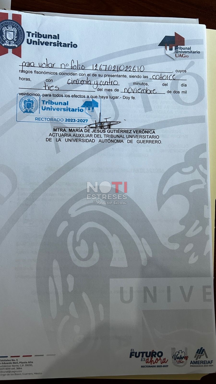 Chilpancingo, Guerrero 3 de noviembre 2025.– El Tribunal Universitario de la Universidad Autónoma de Guerrero (UAGro) resolvió que carece de competencia para conocer de la impugnación presentada por un grupo de cuatro universitarios en contra del dictamen emitido por el Honorable Consejo Universitario el pasado 9 de septiembre de 2025, mediante el cual se aprobaron las reformas a los artículos 28 y 29 de la Ley Orgánica número 178 de la Universidad Autónoma de Guerrero.