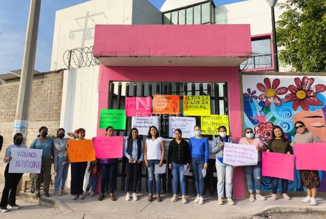 Este lunes, trabajadoras del Centro de Justicia para las Mujeres de Tlapa y del Centro Comunitario Gú’wa Kúma: Casa de los Saberes de Ayutla detuvieron sus actividades para exigir el pago de sus salarios y honorarios atrasados desde mayo.